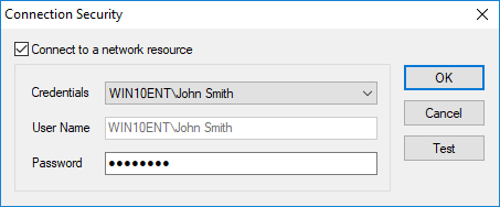 The Connection Security dialog is used if the path is a network drive and you need to connect to the remote computer using a specified user name and a password.