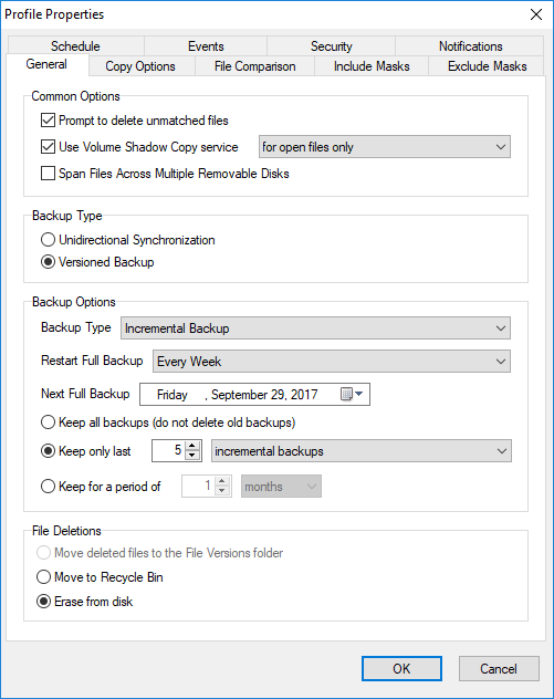 Backup Type Unidirectional Synchronization - files are copied as is from the source folders to the destination folders. SmartSync Pro compares source and destination folders using File Comparison criteria and copies new and modified files only. Versioned Backup - files are copied to a version subfolder of the destination folder. SmartSync Pro compares source and the last version of destination files using File Comparison criteria and copies new and modified files only to the new version folder.
