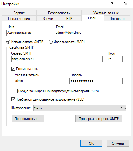 Проверка настроек SMTP